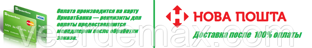 Магазин Veer Demax працює тільки за передоплатою. Передплата 100% на картку Приват банку. Так само відправляємо післяплатою, оплата провадиться при отриманні на складі Нової пошти (після передоплати 200 грн. - min за одну пару ) -- реквізити для оплати надаються менеджером після обробки замовлення.
